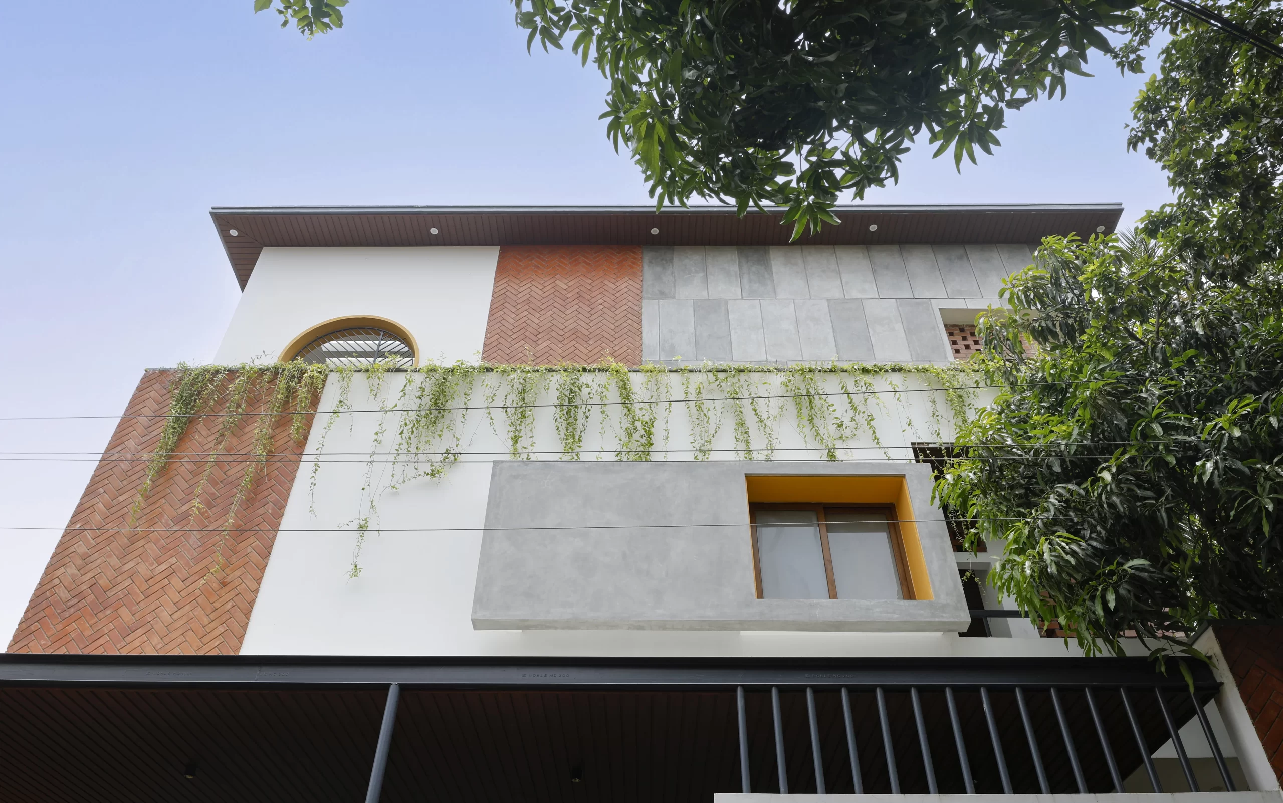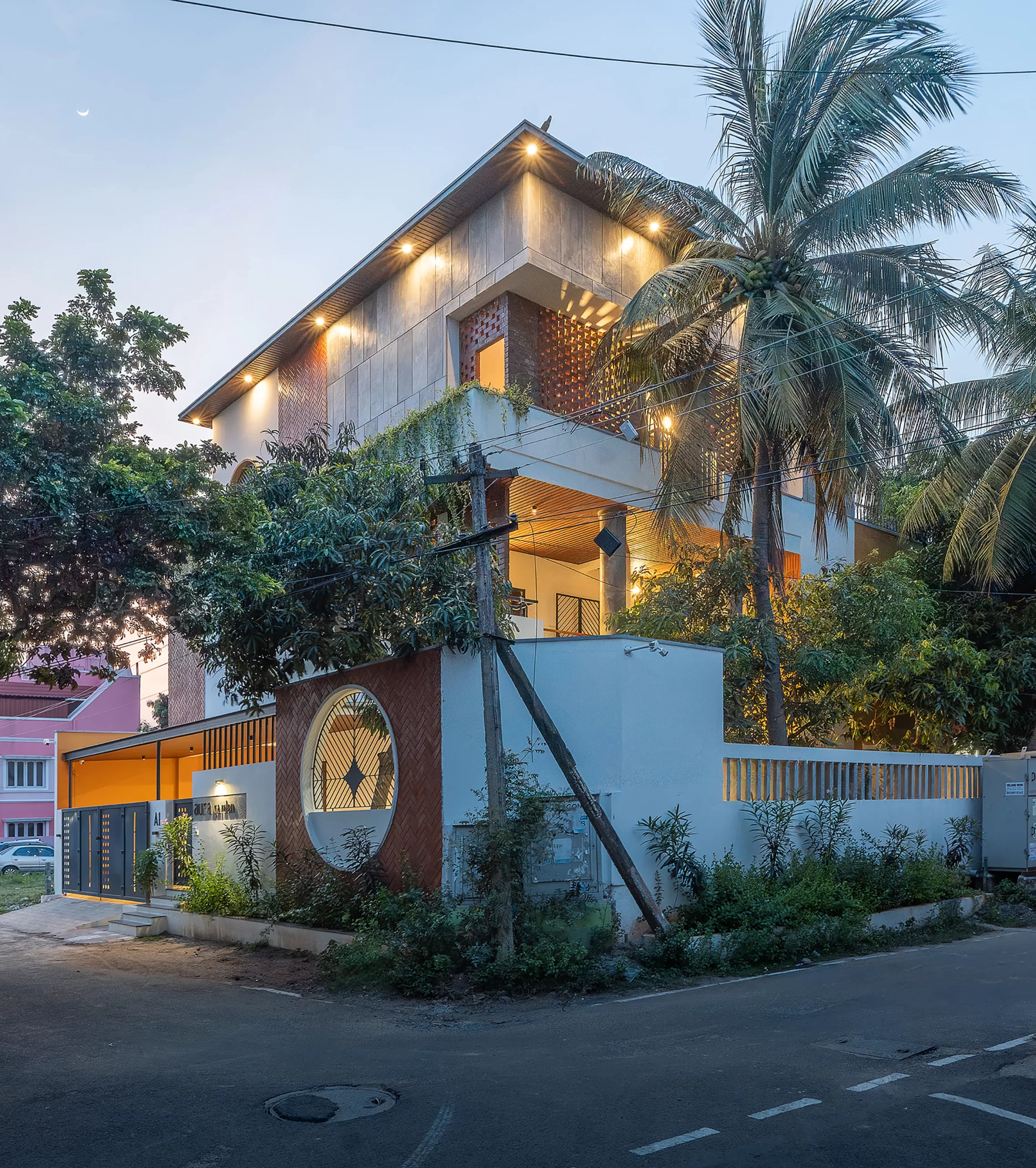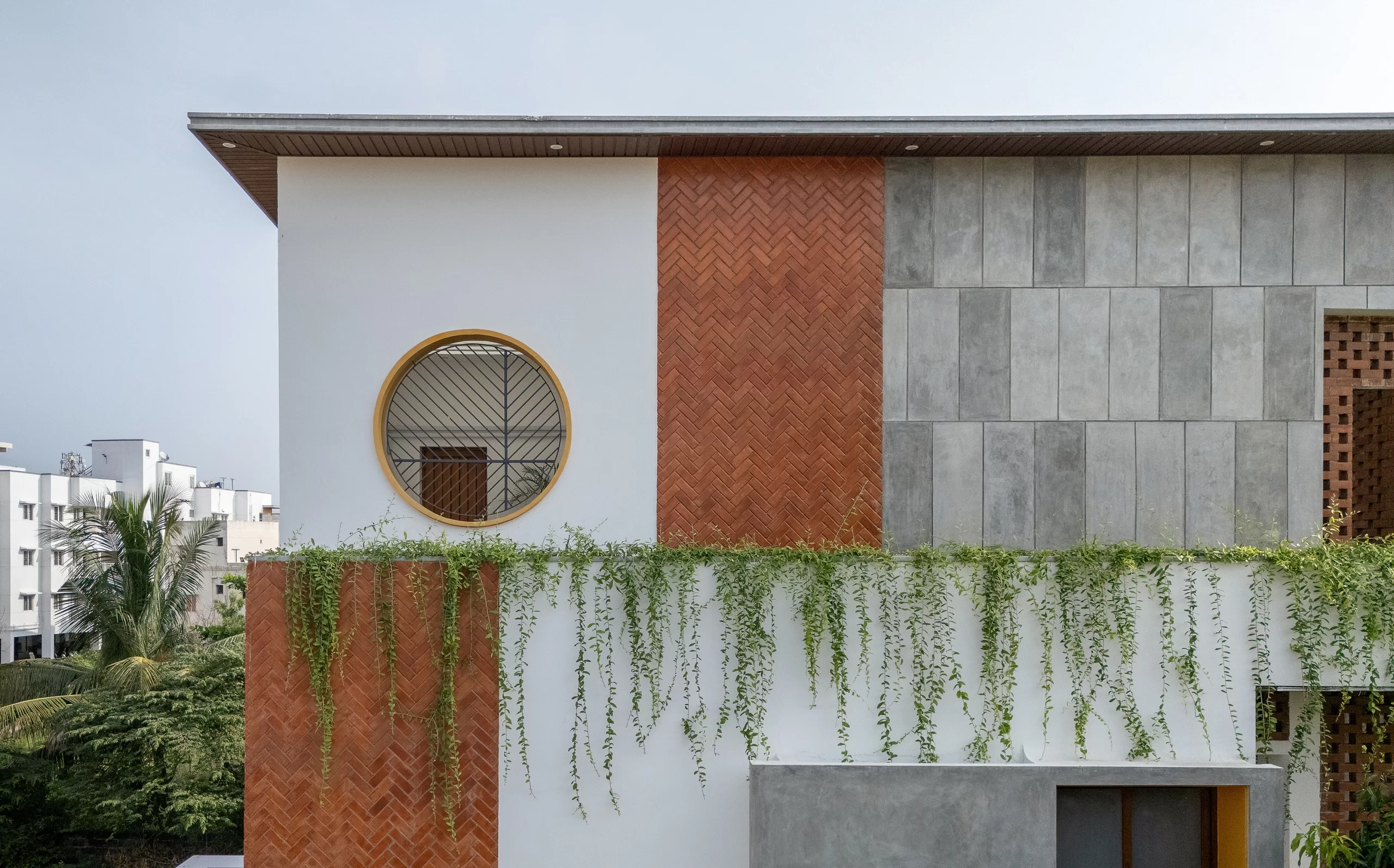 The design of Coexistence House is rooted in the philosophy of living in harmony with nature. The site, located in Perungudi—a rapidly urbanizing neighborhood of Chennai—held a unique character with its mature mango and coconut trees, remnants of an older garden deeply tied to the memory of the place. The client’s deep emotional connection to these trees became the guiding principle for the design: to build without displacing nature, allowing the house and landscape to grow together as one ecosystem.